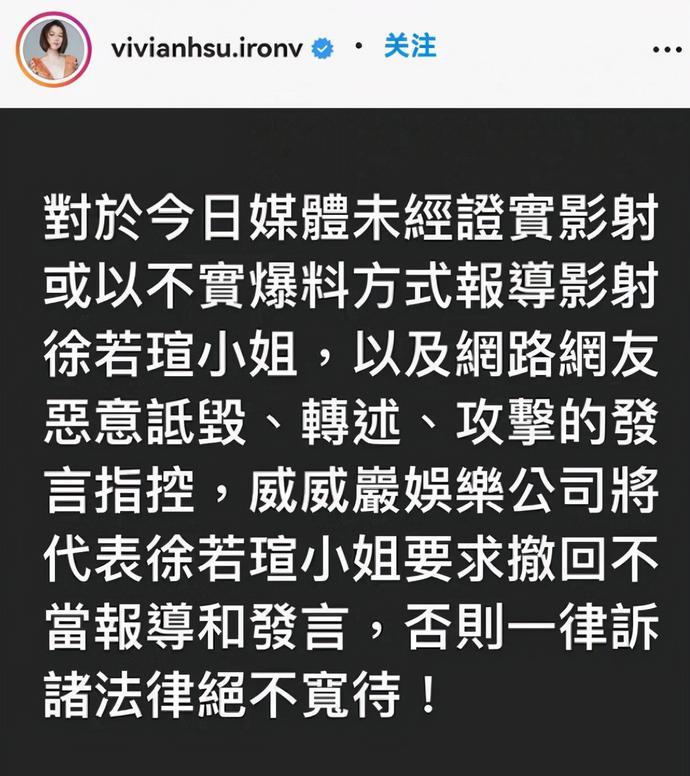 對(duì)此徐若瑄深夜回應(yīng),稱網(wǎng)上含沙射影的揣測(cè)屬于惡意詆毀,希望大家可以盡快刪除,否則一律起訴用法律解決。