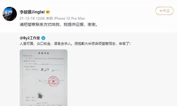 面對(duì)如此丑聞,By2的態(tài)度十分強(qiáng)硬,直接在深夜報(bào)警,還曬出了回執(zhí)單。讓人沒想到的是,李靚蕾正面剛,直接轉(zhuǎn)發(fā)該動(dòng)態(tài),并稱:“請(qǐng)把警察聯(lián)系方式給我,我提供證據(jù),謝謝”!完全就是絕地反擊,被爆料者本人點(diǎn)名實(shí)錘。
