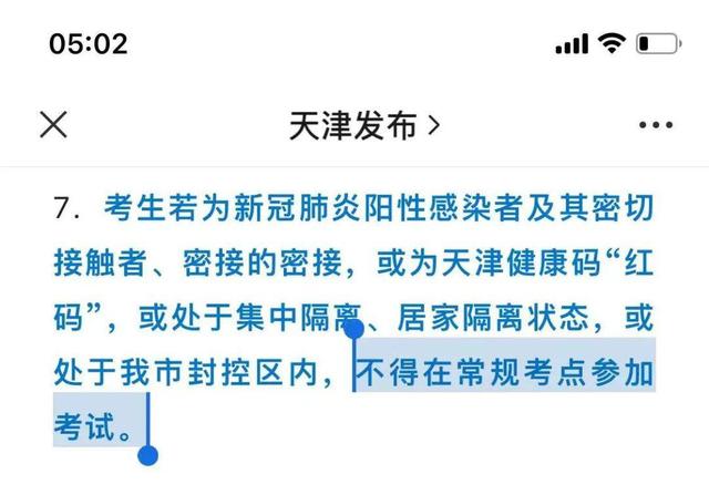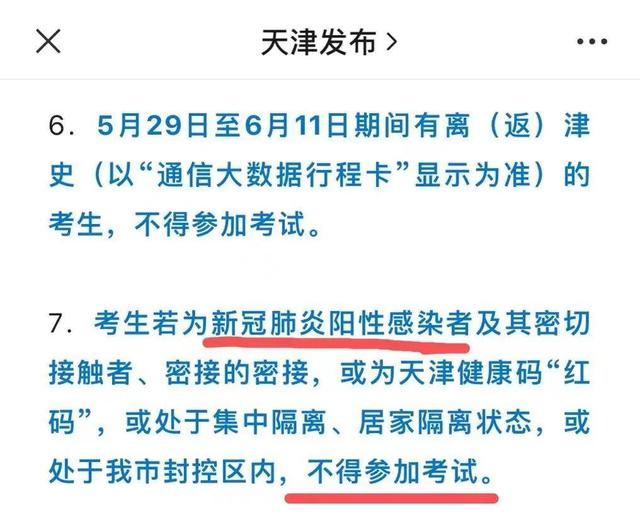 “考生若為新冠陽性感染者、密接者、次密接者,或者健康碼紅碼、集中隔離、居家隔離、處于封控區內的,不得參加考試。”