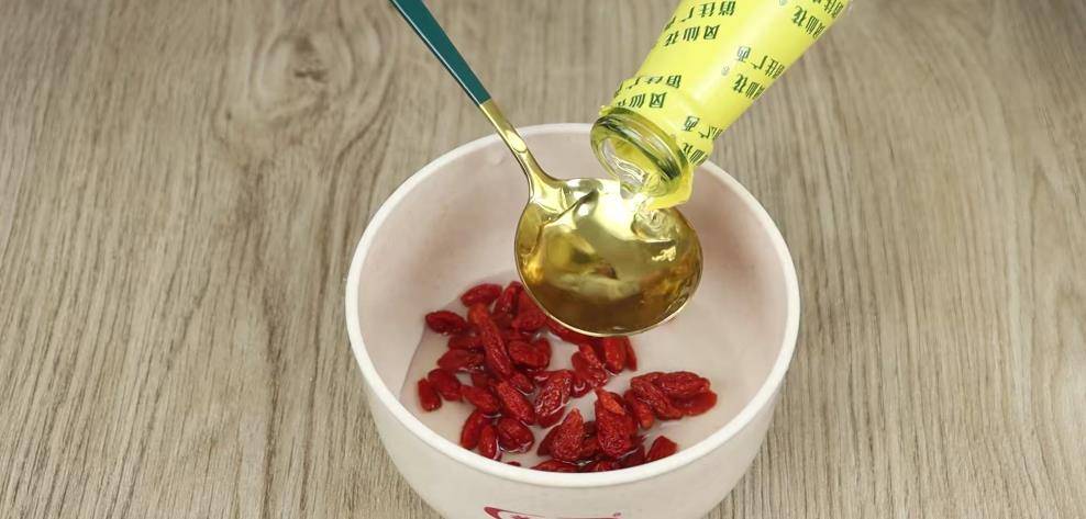 這時候我們就可以準備一個容器,把我們的枸杞放進去,再倒入一些白醋,白醋沒過枸杞就可以了。兩者放在一起以后,我們再把它攪拌均勻,放30分鐘后面就可以食用了。如果想吃沒有那么酸的話,我們也可以放一小塊的黃冰糖,這樣子可以中和一下醋的酸味。