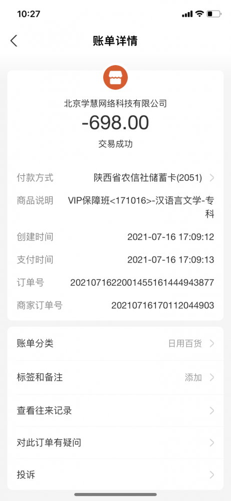 我本人2021年7月16日,因學歷提升在學慧網科技有限公司報考學歷提升網課6480元。付款成功后發現授課老師講課一塌糊涂。我立即要求退費,在我強烈要求下他們讓我簽了一份霸王條款的協議,必須扣除新生注冊費用972元,退還5508元,120個工作日內到賬。可是到120個工作日后,仍然沒有退款的意思我多次微信溝通他們一推再推。