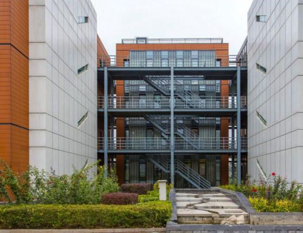 材料:高科技模數化、母度化的合成面板與玻璃幕墻,“U”玻手工玻璃、手工質感瓷板,使企業獨棟呈現溫暖感與科技感
