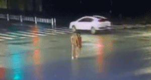 監(jiān)控顯示,被撞的那名女子原本是正常在路口等待信號燈放行的,可是,等信號燈變綠,女子走上斑馬線后不久,她居然一扭身,走出了斑馬線,然后直接蹲在馬路上,看起來好像在哭泣。大約1分鐘后,事故就發(fā)生了。