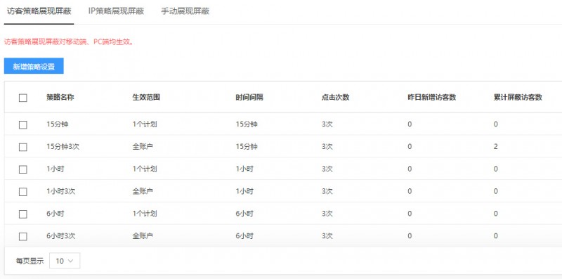 訪客策略展現(xiàn)屏蔽對移動端、PC端均生效。