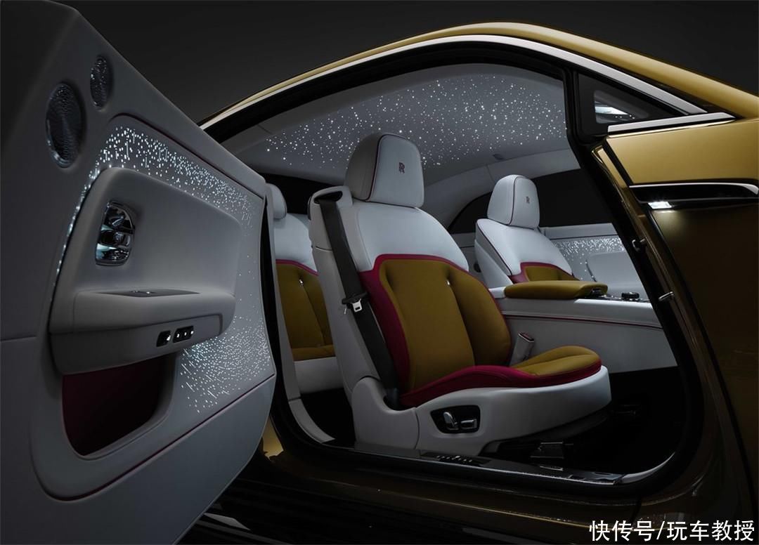 最新一代的勞斯萊斯在副駕中控臺(tái)前提供了由5500顆星星點(diǎn)亮的面板,當(dāng)然你也可以把自己想放的東西鑲嵌到里面。著名的星空頂如今已經(jīng)升級(jí)成了4796顆燈珠的流星頂,閃靈還是首次采用星光車門的勞斯萊斯。