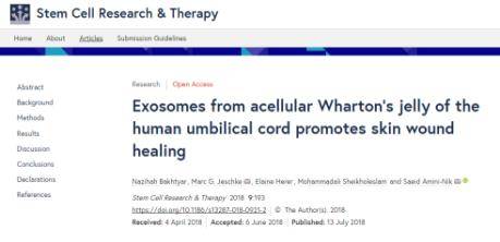 近期,國際期刊《Stem Cell Research & Therapy》發表了一篇最新研究成果,科學家發現臍帶間充質干細胞分泌的外泌體有促進傷口愈合的功效。
