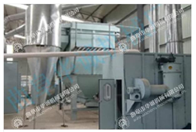 上料機(jī)——塑料破碎機(jī)——螺旋輸送機(jī)——高速篩分機(jī)——塊狀分離器——粉塵分離器——打塊機(jī)——粉塵收集器——毛絮收集器——布袋式除塵器——造粒設(shè)備