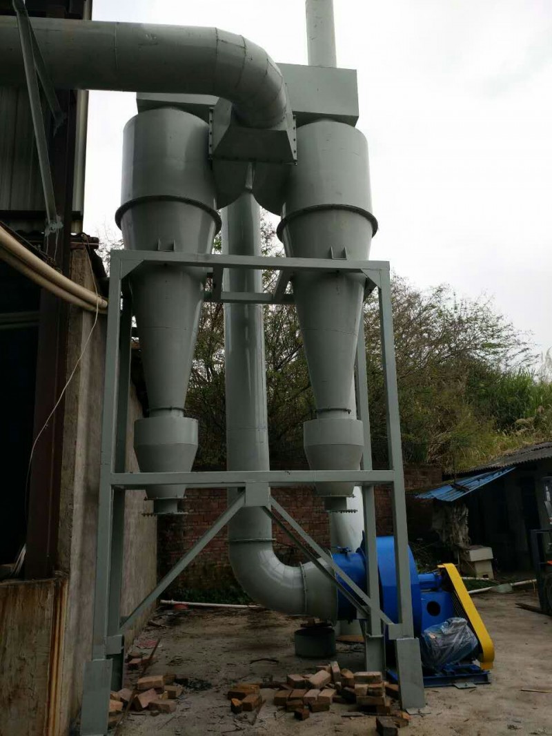 旋風除塵器是除塵裝置的一類。除沉機理是使含塵氣流作旋轉運動,借助于離心力降塵粒從氣流中分離并捕集于器壁,再借助重力作用使塵粒落入灰斗。旋風除塵器于1885年開始使用,已發展成為多種型式。按其流進入方式,可分為切向進入式和軸向進入式兩類。在相同壓力損失下,后者能處理的氣體約為前者的3倍,且氣流分布均勻。普通旋風除塵器由簡體、錐體和進、排氣管等組成。旋風除塵器結構簡單,易于制造、安裝和維護管理,設備投資和操作費用都較低,已廣泛用來從氣流中分離固體和液體粒子,或從液體中分離固體粒子。在普通操作條件下,作用于粒子上的離心力是重力的5~2500倍,所以旋風除塵器的效率顯著高于重力沉降室。大多用來去除0.3μm以上的粒子,并聯的多管旋風除塵器裝置對3μm的粒子也具有80~85%的除塵效率。選用耐高溫、耐磨蝕和服飾的特種金屬或陶瓷材料構造的旋風除塵器,可在溫度高達1000℃,壓力達500×105Pa的條件下操作。從技術、經濟諸方面考慮旋風除塵器壓力損失控制范圍一般為500~2000Pa。