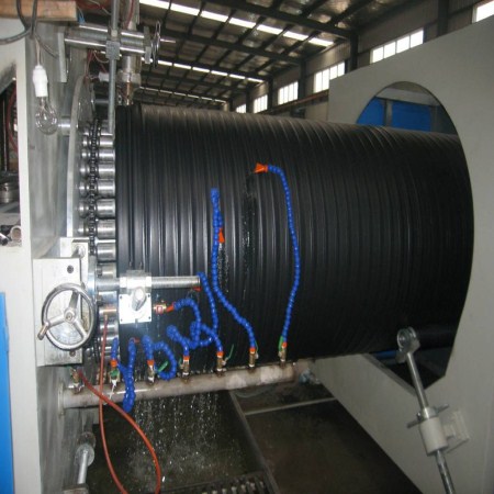 一、 從擠塑機(jī)口模擠壓出來(lái)地異型結(jié)構(gòu)型材,按照預(yù)先設(shè)定的位置均價(jià)的纏繞綁定在滾筒磨具上面,并同時(shí)擠壓出PE熔融料將異型結(jié)構(gòu)型材熔接成一個(gè)完整的整體,這樣操作能夠有效的確保結(jié)構(gòu)壁管熔接縫的優(yōu)質(zhì)質(zhì)量。熔縫的質(zhì)量非常高。