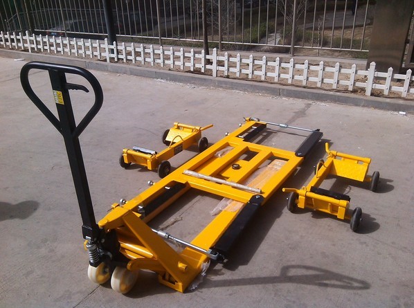 移車器使用方法:首先把清障車液壓裝置放置低,然后將清障車的兩個前叉對準被拖車輛的兩個后輪,用力推,前叉會自動插入并鎖住輪胎。這時用力打升液壓裝置,車輛會自動升起,升到合適的高度就可拖離現場,可轉彎可拖到任何地方。卸載時只需輕輕按動開關,車輛會自動降落到地面,再把清障車拉出來整個程序結束。托自動擋汽車時可與兩個前車滑輪及千斤頂配合使用。