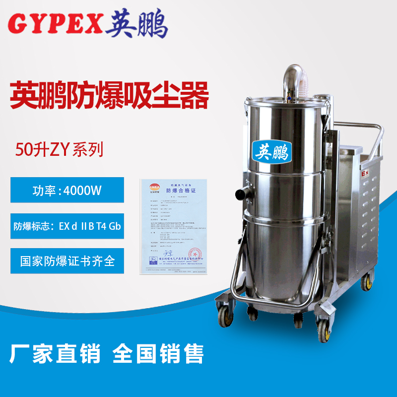 英鵬防爆吸塵器系列采用二級粉塵區(qū)域防爆設(shè)計(jì),防護(hù)等級IP56,防爆等級Ex d ⅡB T4 Gb。