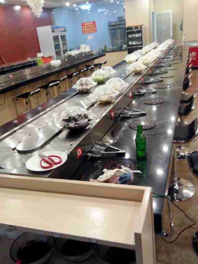 客人用餐臺面可用大理石或實木裝修,設備還可根據業主餐廳布置的要求,來做不同形狀,