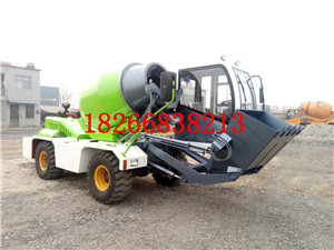 自行研發自行設計自行生產的自上料混凝土攪拌車,是一個自已上料后攪拌并可以行走式攪拌機。