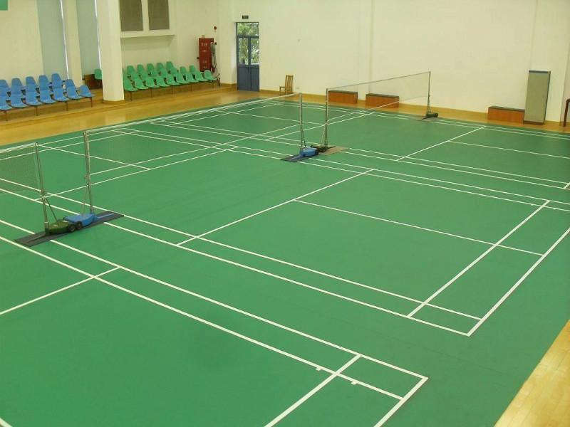 (10)劃線:按標準尺寸量度定位,用帆布線標出線條位置,然后而用美紋紙沿帆布線貼在球場上,用劃線專用劃線漆均勻用毛刷刷于兩美紋紙之間,待涂料表面干后把美紋紙撕掉即可。