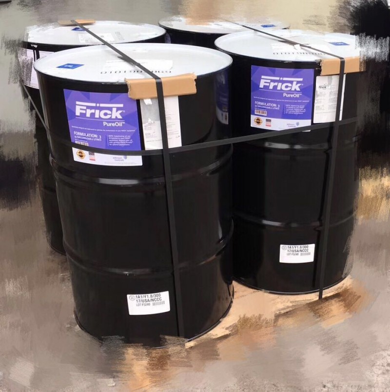frick#19系列冷凍機油是專業調制合成冷凍油,此產品不含臘,它可改善在高溫及低溫下的潤滑情況,減低揮發性,良好的化學惰性及水解穩定性。并且與礦物油有良好的相溶性,而且可以走到更低的溫度,例如:-60℃至-70℃。并且該合成冷凍油是一種長壽命的潤滑油,尤其是在油浸式螺桿壓縮機上。