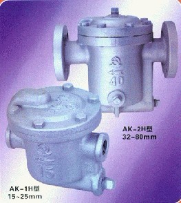 吊桶式疏水閥,如AK-5,AK-1H,AK-2H型等:切實分離氣體和水份,使由蒸汽夾雜而產生的損失為零。整體結構都安裝了上蓋,保養管理便利。內藏過濾器,配管空間和設備費用更合理。