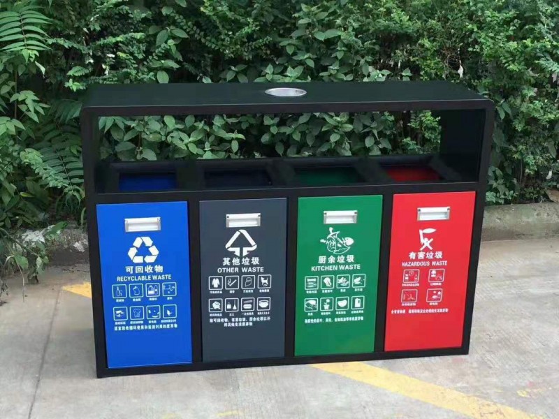 a設垃圾分類收集其他垃圾和可回收物和易腐垃圾和有害垃圾內膽箱各一只,采用優質鍍鋅板材質,具有防腐、阻燃的特點,光滑表面易于傾倒垃圾,外側四面自帶拉手。