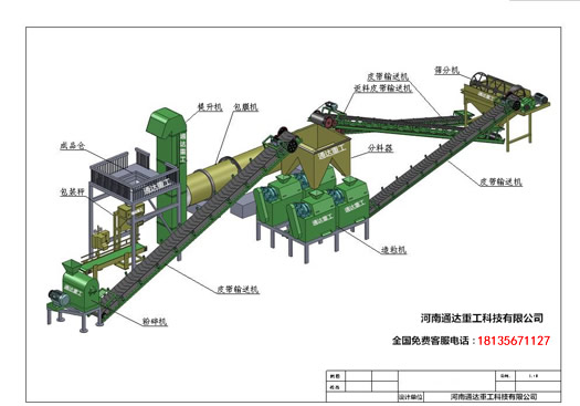 干燥系統的主要設備有皮帶輸送機、轉筒干燥機、冷卻機、引風機、熱風爐等; 除臭除塵系統由沉降室、除塵室等組成,通達重工免費提供圖紙,免費指導用戶壘砌;
