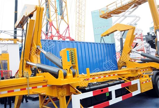 集裝箱裝卸用吊鏈旋鎖機構,裝箱作業時旋鎖在集裝箱角件里自動旋轉并鎖緊,不會脫落,保證作業時的安全性;運輸時,旋鎖通過限位裝置仍能自動鎖定,解除了操作人員運輸收鏈和卸車裝鏈的重復性,也大大提高了行車時的安全性;作業結束后,通過優化吊點的運動軌跡和收鏈位置,實現吊臂回收過程中吊鏈的自動存放,大大提高了操作的舒適性和整車的安全性。