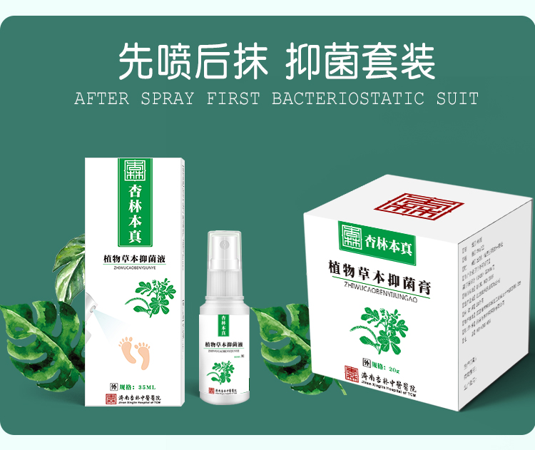 杏林本真治腳氣套裝包含植物草本腳氣噴劑和植物草本腳氣膏,先噴后抹,氣味清新不刺鼻,植物萃取,溫和親膚。富含狼毒、蛇床子、黃柏、紫草、紅花、苦參和蘆薈等7味中藥材,成分安全。適用于腳癢、水泡、爛腳、脫皮、異味和汗腳等多種足部問題,具有深層滲透無(wú)異味、無(wú)刺激不脫皮、防復(fù)發(fā)等特點(diǎn)。