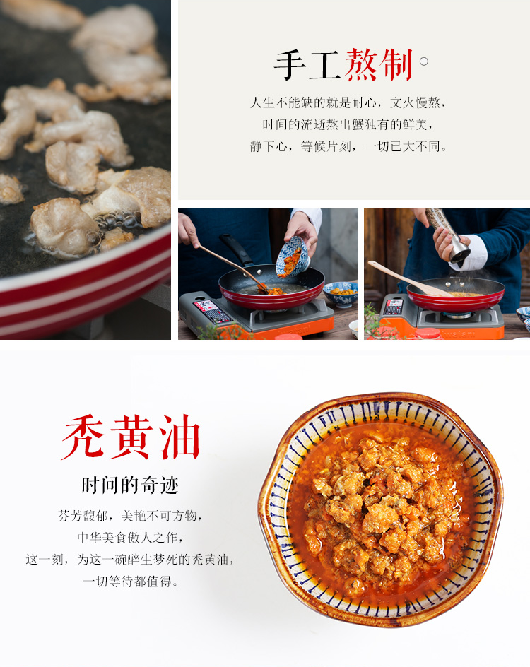 蟹囧™禿黃油中含大量的蟹黃蟹膏,當蟹黃溶于豬油時,豬油就被蟹黃“染”成了黃色,所以你們收到的禿黃油是黃色。