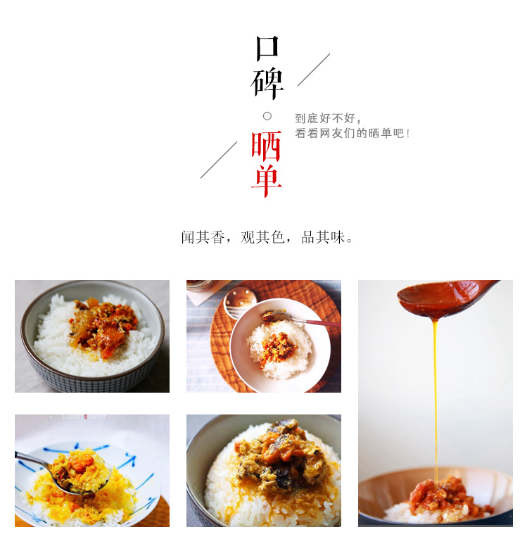 蟹囧™禿黃油的鮮美濃郁如此極致,幾乎任何菜式在它旁邊都會黯然失色。相比之下,蟹囧™禿黃油最正宗的吃法,是與熱騰騰的米飯以1:1的量均勻拌開,這樣才能化開凝固的油脂。舀一勺金黃色的禿黃油,輕輕一攪,每一粒飯都泛著金黃的亮光,平平無奇的一碗白飯便成了美食的至高享受。