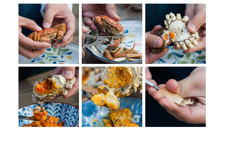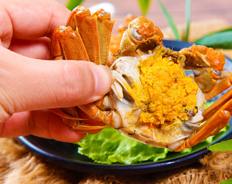 每當西北風起,美麗的長蕩湖里的大閘蟹便耐不住腳癢,此時也正是長蕩湖大閘蟹最肥美的時候。青背白肚、金毛黃爪是一只好蟹少不了的標志,通常,大閘蟹個頭越大越好,腹甲要飽滿,肚臍要突出,讓人閉眼就能意淫到揭開蟹蓋那一瞬溢出的肥滿膏黃,對這膏黃的極致吃法,便是蟹囧™禿黃油。