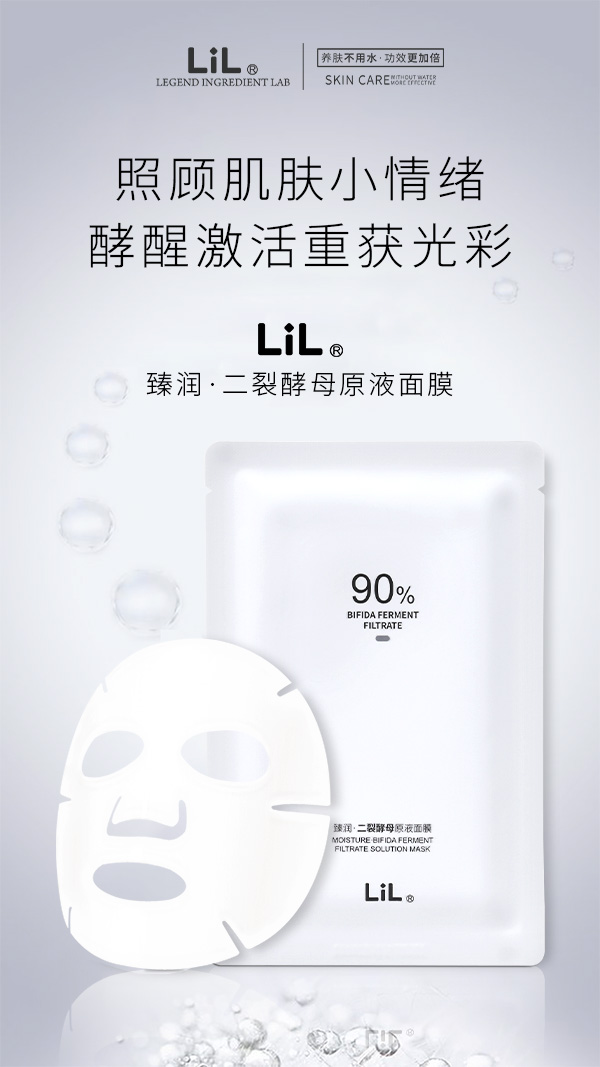 傳統化妝品包括面膜第一位的成分都是水,整瓶中80~90%的含量為對肌膚沒有任何養分的純凈水,相當于功效成分只有10~20%,而LiL®采用發酵活性物精華完全替代水,產品配方中不額外添加一滴水,整一瓶都是營養功效成分,養膚效果更佳。并且每一件獲批“準生證”的產品都要經歷研發人員數千次測試,產品成分均達到EWG世界綠色安全等級標準,LiL®極力打造功效與安全的黃金配比。