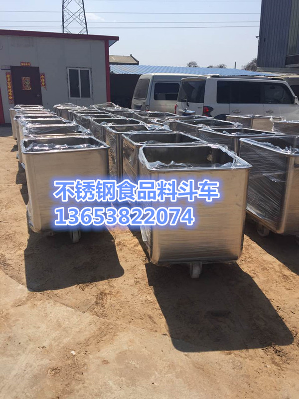 河南不銹鋼肉料斗車 料斗車價格 不銹鋼料車,食品廠用送料車,料斗車,廠家直銷,可加工定做,200L料車,底采用3mm后不銹鋼,壁厚2mm,重量33kg,料斗車整體不銹材質(zhì),底部整體沖壓成型減少,焊接更堅固耐用,壽命更長;底輪采用耐磨尼龍材質(zhì),更耐磨,壽命長。