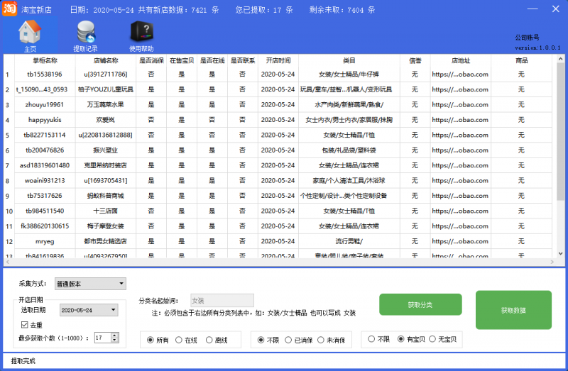 軟件采用智能化,傻瓜化操作,快速、方便的采集分析,采集內(nèi)容包括賣家賬號,信用,店鋪地址,消保狀態(tài)等等數(shù)據(jù)。