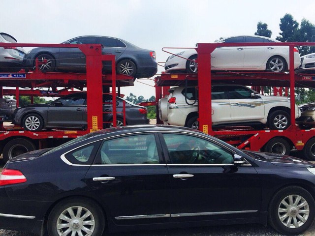 專用運輸汽車的大板車穿梭在廣州、東莞與西安、烏魯木齊之間,隨時捎帶個人單臺私家車。場地大、人脈廣、速度快、價格合理、扼守行規。