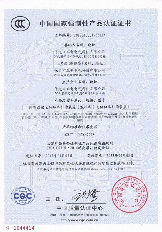 (即400KVAR左右),選擇智能濾波補償單元60KVAR功率補償單元6臺,控制單元(20KVAR功率