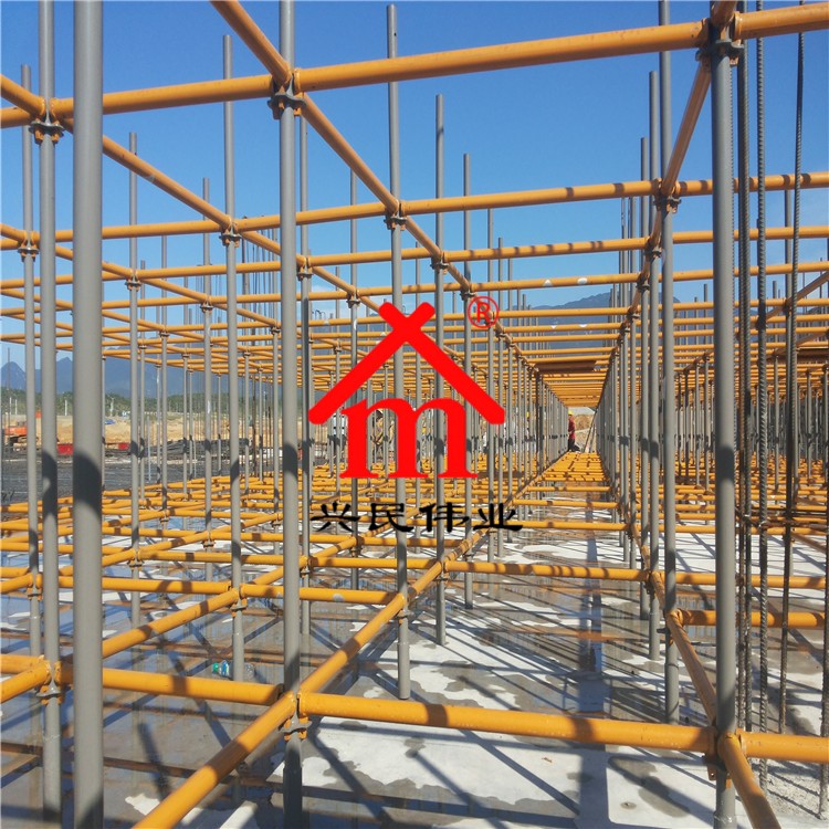 興民偉業輪扣式腳手架優點:立桿、水平桿通過插頭、插座、承插配合,形成穩定的幾何結構,連接緊密穩定性強;