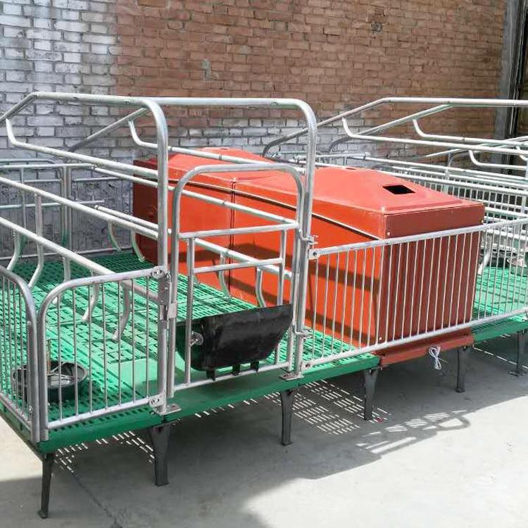 母豬產(chǎn)床又稱高培產(chǎn)仔欄,主要由母豬定位架、仔豬圍欄、仔豬保溫箱、漏糞地板、母豬食槽和小豬補(bǔ)料槽等組成。母豬定位架的作用是控制母豬自由活動(dòng)區(qū)域和躺臥方式,母豬產(chǎn)床定位架之間有擋杠,避免仔豬被壓死、踩死和壓傷。定位架的長(zhǎng)度一般為2.1-2.3米,寬度為0.6米,高度為1.0米。豬用產(chǎn)床可以大大降低仔豬的發(fā)病率,提高仔豬的成活率,使母豬產(chǎn)后恢復(fù)快,能充分發(fā)揮豬的生產(chǎn)潛力,防止生物的積累繁殖,減少仔豬疾病的發(fā)生.為新生仔豬提供一個(gè)健康舒適的環(huán)境活動(dòng)空間。母豬產(chǎn)床的支撐梁選用球墨鑄鐵或床面:床面母豬部份選用球墨鑄鐵板,或鋼絲編織網(wǎng)地板仔豬部分選用塑料漏縫板,滿足了母豬與仔豬的生長(zhǎng)需要。床架:床架采用熱鍍鋅管焊合而成、結(jié)實(shí)、耐用、抗老化、耐腐蝕。其它:采用螺栓連接拼裝,組裝十分簡(jiǎn)單方便,另配有仔豬保溫箱、加熱燈、母豬用飲水器、仔豬用飲水器。
