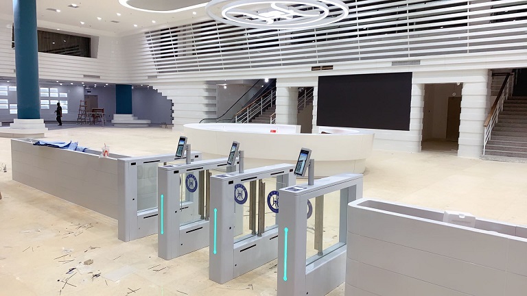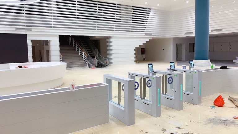 拍打門門板運行方向為90度開合。運行過程處于人體視線范圍之內,相比扇門翼閘更加安全。另外,由于門板不必縮入箱體內部,拍打門的機箱的樣式則更加多變,同時門板的寬度不受機箱尺寸,通道的寬度可以更靈活。由于以上特點,拍打門門一般應用于高鐵站、機場、、企業大樓、寫字樓等處。