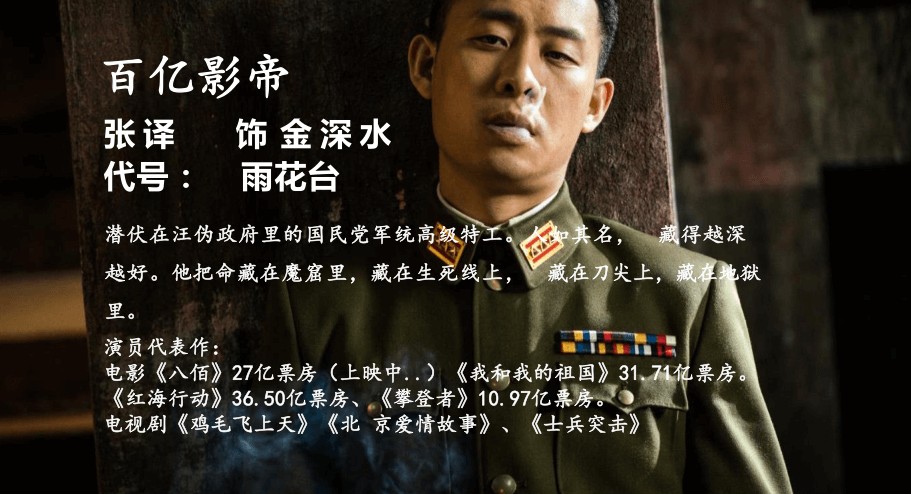 百億影帝,潛伏在汪偽政府 里 的國(guó)民黨軍 統(tǒng) 高 級(jí) 特工。人如其名 , 藏得越深越好。 他 把命藏在魔窟里 , 藏在生死線上 , 藏在刀 尖 上, 藏在 地獄里。