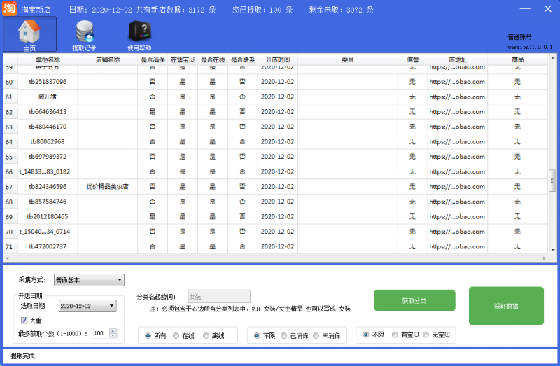 淘寶新開店采集軟件,實時更新,一鍵提取