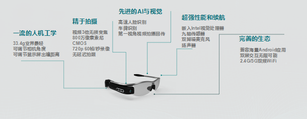 超強性能和續航:嵌入Intel視覺處理器,九軸傳感器,雙降噪麥克風,揚聲器