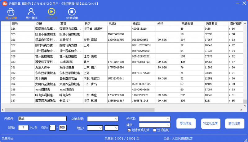 淘寶天貓商家聯系方式提取工具