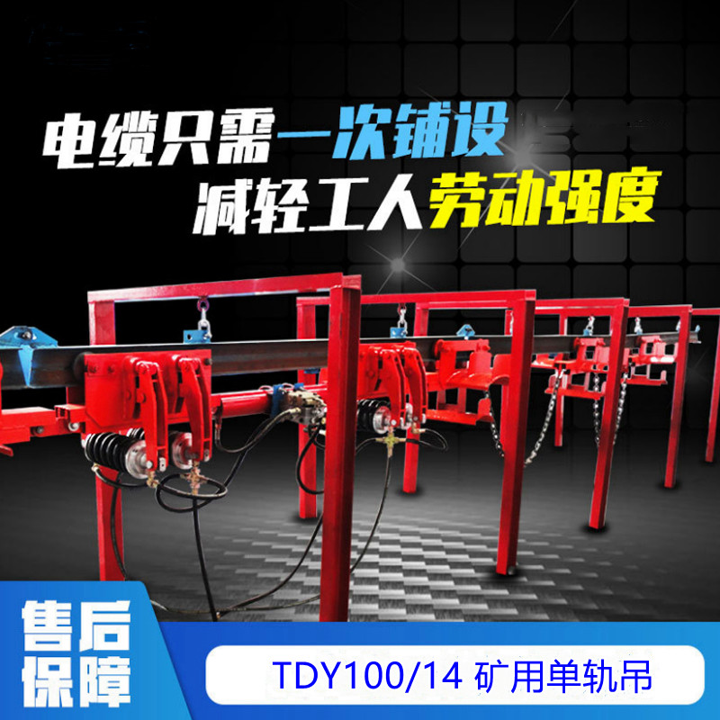 礦用液壓電纜拖掛單軌吊是用于煤礦綜采工作面順槽電纜、乳化液高壓膠管和水管的吊掛與移動的專用運輸裝置。在綜采工作面運輸巷道一側的頂板下,利用錨桿和鏈條吊掛懸空軌道,拖運車將所有電纜和膠管、水管都吊掛在上面,利用工作面乳化液泵站作動力,通過油缸和連桿組成的液壓步進式推拉裝置,實現電纜、高壓膠管和水管沿著巷道吊掛和移動。該裝置避免了井下電纜凌亂擺放,減少了電纜的占用空間與電纜的移動次數,避免了人工拖動電纜,減少了工人的勞動強度和作業效率。