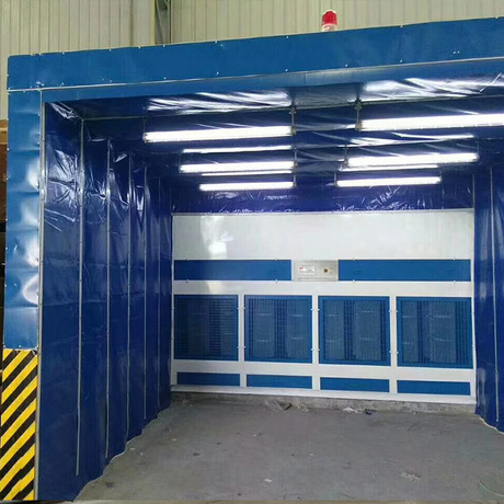 伸縮移動噴漆房是專門為解決較大型工件移動運送困難而研制的實用型環保產品,噴漆區可根據產量大小,任意調整,充分利用生產場地和操作空間!使用伸縮移動噴漆房在生產工藝上大大簡化了不斷用車間天車吊運大型笨重工件來回周轉的工藝流程;而無需專門的運輸工具;展開長度可以在任意位置!伸縮移動噴漆房是一種可以在需要使用時自動展開形成封閉或半封閉的作業間,不需要實用時收縮合攏到一處的特殊房體裝置,設計理念和技術的集成,使其應用范圍非常之廣。