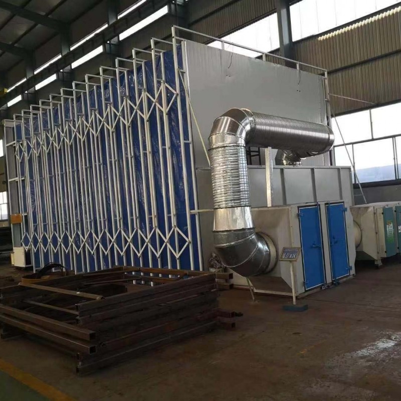 伸縮移動式噴漆房和無泵水幕噴漆房結(jié)合使用,是解決重型工件噴漆時移動難的問題,而活動噴漆前室就克服這個問題。工作時將活動前室收縮,用天車將重型工件吊運到噴漆場地,再將活動前室展開,罩住工件,即可工作。噴漆后再將前室收縮,用天車將工件吊離,不影響天車的工作,大大簡化了不斷用車間天車吊運大型笨重工件來回周轉(zhuǎn)的工藝流程;而無需專門的運輸工具;展開長度可以在任意位置,也可根據(jù)客戶的實際生產(chǎn)需要定做各種型號的非標(biāo)尺寸。