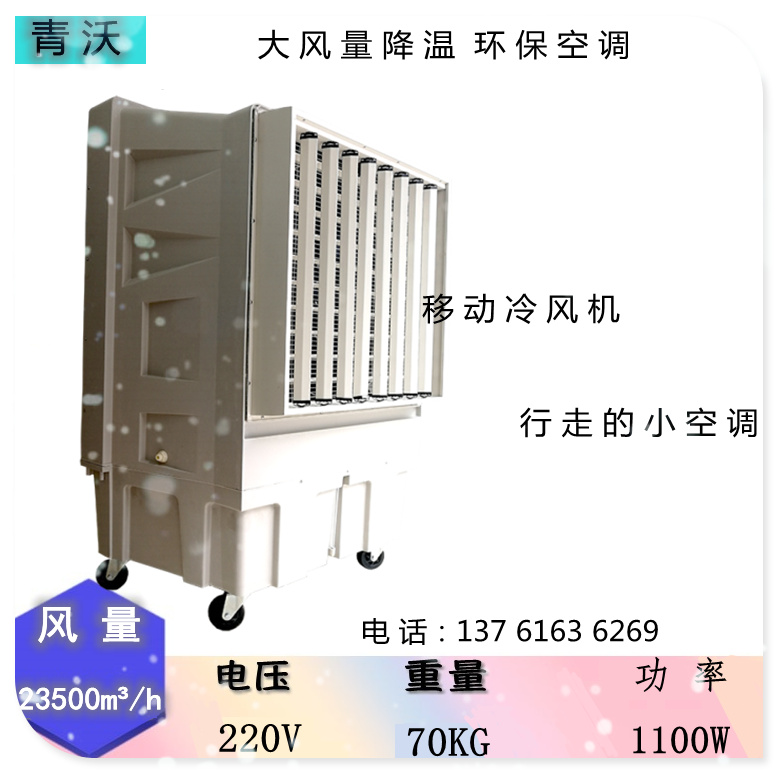 移動(dòng)環(huán)保冷風(fēng)機(jī)適用于開放式及半開放式環(huán)境使用,能夠直接輸送自然風(fēng)及輸送經(jīng)降溫后的涼風(fēng)。室外新鮮空氣經(jīng)過環(huán)保空調(diào)過濾、降溫后向室內(nèi)源源不斷地大量輸送,將室內(nèi)帶有氣味、粉塵和渾濁悶熱的空氣排出室外,同時(shí)兼顧換氣降溫及增加空氣含氧量等多種效果,特別適用于高溫及人群密集的場所。