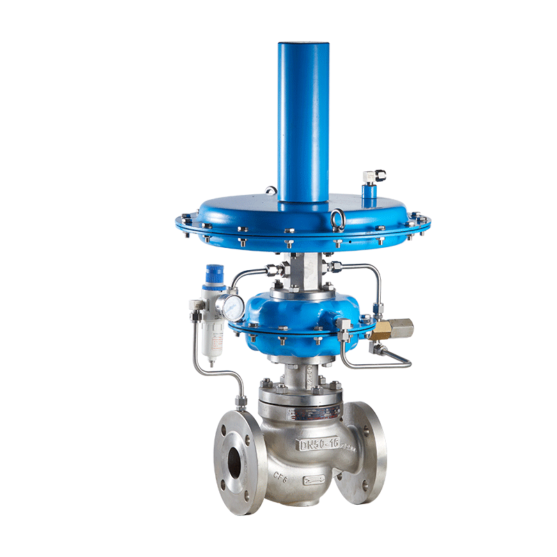 1、當?shù)忾y關(guān)閉時,主閥的活塞是在一個密封室內(nèi),當儲罐壓力等于或大于設定的壓力時,膜片就被向上頂起,氣導閥在彈簧的作用下向上移動,把氣導閥上的密封圈緊緊壓在閥座上,關(guān)閉了控制氣的進口,同時特殊閥芯室的壓力增加并接近氮氣總管的壓力,此壓力通過內(nèi)部通道,從特殊閥芯室傳到主閥閥芯室,主閥的活塞就處于氮氣總管壓力的作用,由于主閥閥芯上、下所受氣體壓力平衡,所以主閥閥芯在自重和彈簧的作用下將閥門緊密關(guān)死。