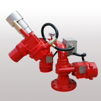 采用遠程集中型電控消防炮系統主要是為了防止現場火情很大,工作人員無法在現場控制消防炮進行滅火的情況。一般情況下,工作人員發現火災后,在現場火災情況可控、火勢不大情況下,可通過消防炮無線遙控器來驅動1臺或2臺消防炮瞄準著火點,啟動電動閥和消防水泵實施滅火;如工作人員無法第一時間拿到遙控器,工作人員還可以通過設在現場的手動控制箱來驅動1臺或2臺消防炮瞄準著火點,啟動電動閥和消防水泵實施滅火。如在現場火災情況危險、火勢很大、工作人員不能靠近手動控制箱時,工作人員可到消防控制中心,通過設在消防控制中心的消防炮集中控制柜配合監控系統的現場監控視頻畫面來驅動1臺或2臺消防炮瞄準著火點,啟動電動閥和消防水泵實施滅火。