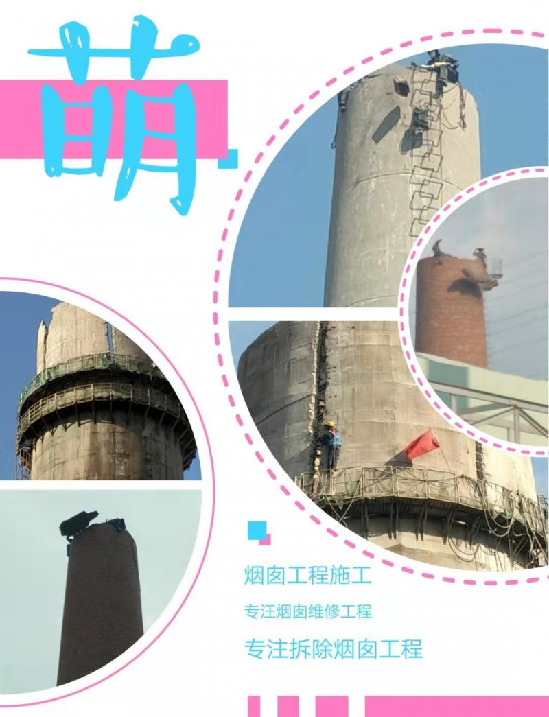 專業的施工人員在操作時,會根據當地實際情況進行分析,考慮拆除的效率以及人員的安全,制作幾套拆煙囪方案,由廠家選擇。進一步提高效率,降低危險性,操作員對供熱煙囪拆除供熱煙囪拆除操作方法:供熱煙囪拆除施工前,在供熱煙囪周圍要仔細檢測環境,先清除拆除倒塌范圍內的物資、設備;將電線、燃氣道、水管、供熱設備等干線與該建筑物的支線切斷或遷移:檢查周圍危舊房,必要時進行臨時加固