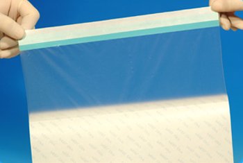 2、展開薄膜向兩側伸張,揭去離型紙輕拉下薄膜,置于手術切口位置的上方。