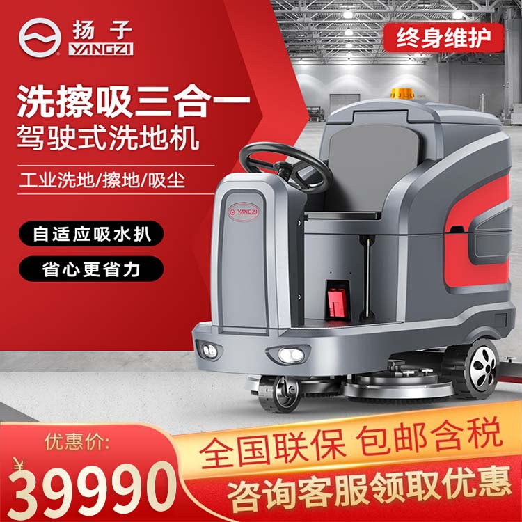 揚子X7駕駛式洗地機車 配置有200Ah天能電瓶,品牌電瓶可以增長機器的使用壽命,后期更換更加方便。大容量138L的清水箱,可持久使用,不用頻繁換水,效率更高,每小時可清潔6000m,智能化操作系統,如水位感應器、語音播報、智能充電,操作更容易上手,并且使用的是阿美德格進口電機,比普通電機的壽命高6倍,輕松降低地面揚塵污染,給員工提供干凈舒適的就業環境!轉彎靈活,清潔不留死角,操作輕便,采用電池驅動,無噪音,節能環保,無二次污染??擅夤ぞ吒鼡Q刷盤及吸水膠條。