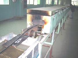 橡膠坯料進入微波加熱箱后,快速提高橡膠坯料的溫度得到均勻的整體加熱,物料的上升溫度要求達到橡膠預熱硫化溫度,溫度要求達到180℃~200℃的預熱硫化溫度范圍,在微波加熱段完成。然后進入紅外加熱保溫段,送入紅外保溫段后進一步完成熟化硫化過程。硫化保溫時間按加熱硫化成熟需要而確定工藝規范,經過檢測橡膠樣品有關性能參數來確定硫化工藝時間,橡膠制品硫化后要進入水冷槽降溫,完成橡膠硫化制品的整個工藝流程。