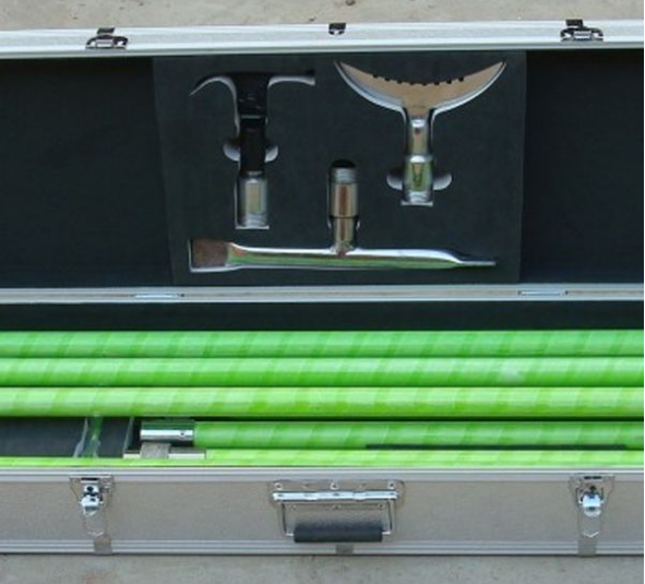 除冰器具操作頭按照作用設(shè)計(jì)成不同形狀,使用時(shí)可以通過(guò)敲、鏟、鉤等方式有效除去瓷瓶、支架、導(dǎo)線及桿塔上的積雪及覆冰。使用時(shí),根據(jù)需要從套件中選取合適的除冰器具,將其安裝到絕緣桿的一端并擰緊后即可使用。絕緣桿分為長(zhǎng)、短兩種規(guī)格,可以根據(jù)現(xiàn)場(chǎng)情況進(jìn)行任意組合,以獲取合適的長(zhǎng)度來(lái)滿足不同場(chǎng)合的需求。